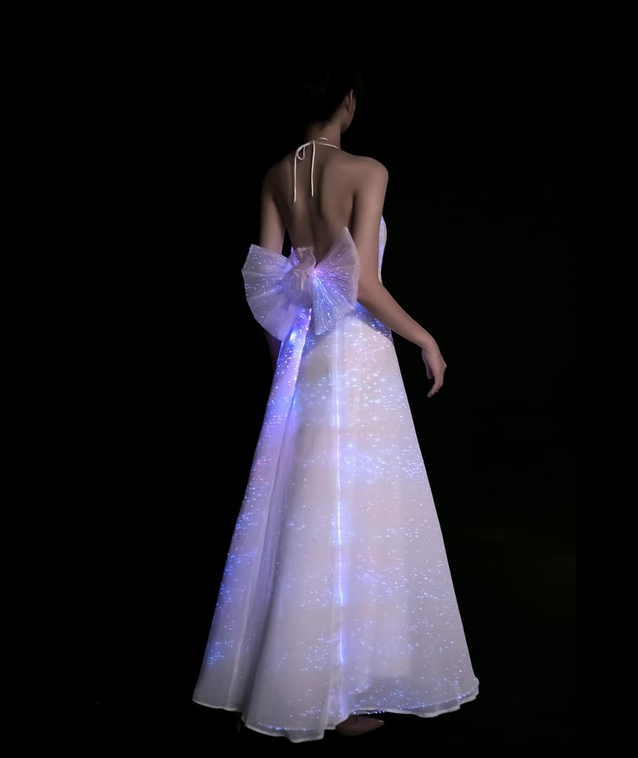 Bowknot Backless Dress Luminous Led Fiber Optic Light up Evening Party Wedding Dress With Unique Technology